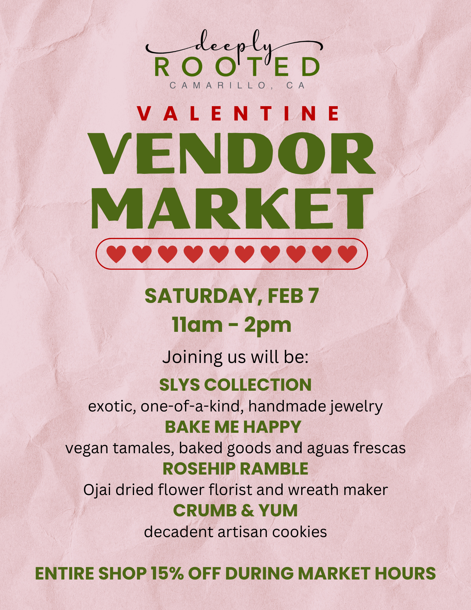 BONUS: CLASS ATTENDEES RECEIVE 15% OFF SAME DAY IN SHOP PURCHASE